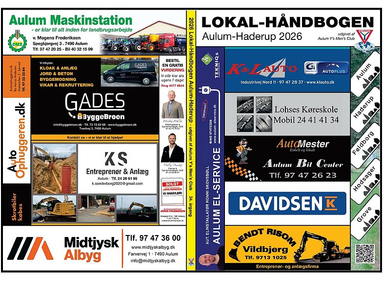 Samtidig vil Aulum Y’s Men’s Club gerne rette en stor tak til alle annoncører for den venlige modtagelse vi altid får, når der skal tegnes annoncer – uden jeres støtte og velvillighed var det ikke muligt fortsat at udgive Lokal-Håndbogen, som nu har været udgivet gennem de sidste 34 år.